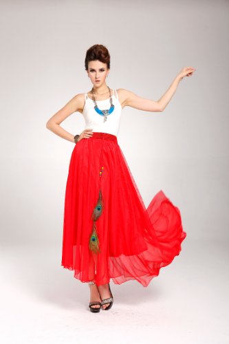 Highwinwin Fashion Sexy Two Wear Design Half-length Style Dress Net Yarn Skirt for Evening Party (Red)