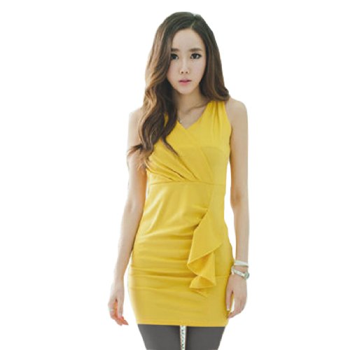 Allegra K Ladies Deep V Neck Sleeveless Ruffled Front Mini Dress Yellow XS $9.80 Show only Allegra K items