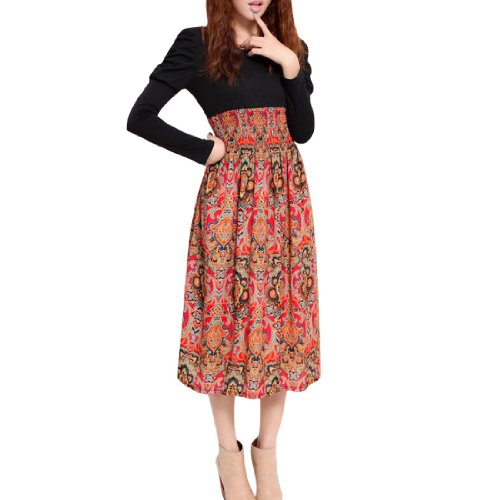Allegra K Ladies Scoop Neck Long Sleeve Pullover Novelty Prints Patchwork Dress Black Red XS $12.55 Show only Allegra K items