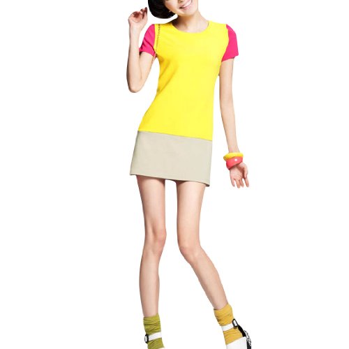 Allegra K Women Scoop Neck Pullover Back Zipper Elegant Mini Dress Yellow Beige S
