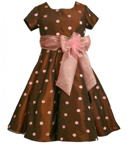 Bonnie Jean Little Girls 4-6X Brown and Pink Embroidered Dot Taffeta Dress