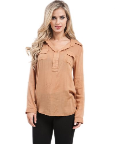 G2 Chic Women's Double Pocket Semi-Sheer Shirt