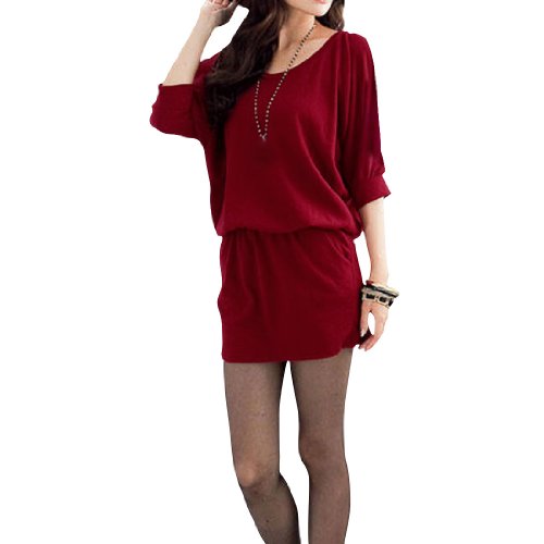 Allegra K Ladies Cut Out Shoulders Pullover Casual Summer Dress Claret Red XS