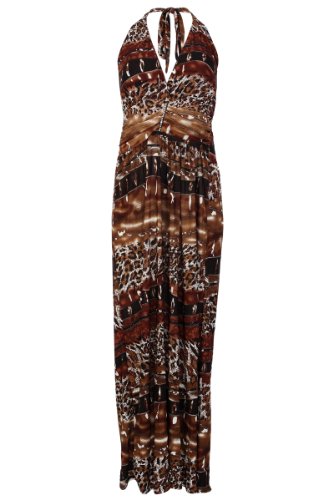 My1stWish Womens 89H Leopard Ladies Diamante Halterneck Summer Long Maxi Dress