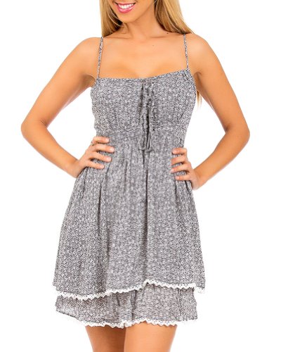 Calla Fashion Womens Floral Print Black & White Spaghetti Strap Tiered Summer Dress