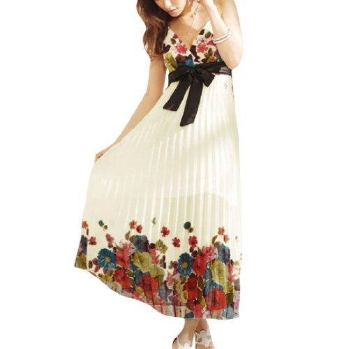 Ekberg Ladies Adjustable Spaghetti Straps Flower Pattern Summer Chiffon Dress