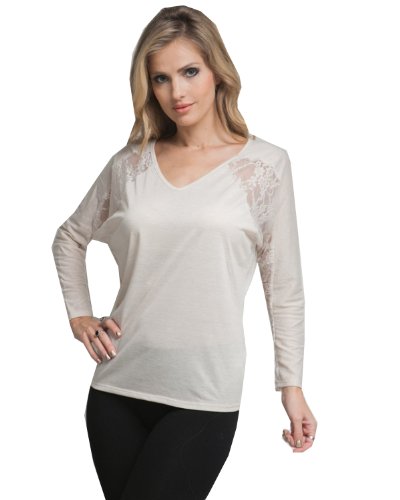 G2 Chic Women's Solid Jersey Floral Lace Top
