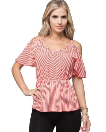 G2 Chic Women's Striped Open Shoulder V-Neck Smocked Top