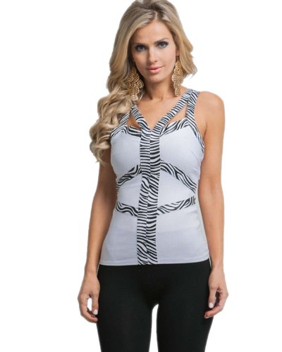 G2 Chic Women's Zebra Bandage Zip Back Top