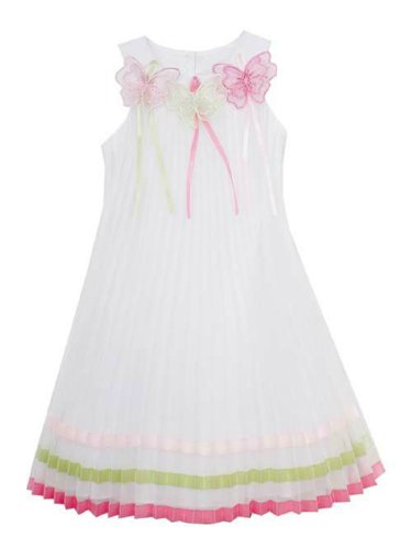 Rare Editions Girls 4-6X White Pink Green Sequin Butterfly Crystal Pleat Dress