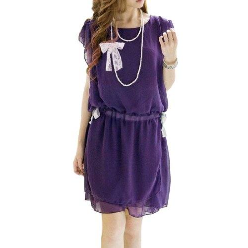 Allegra K Woman Round Neck Drawstring Waist Chiffon Dress Purple M